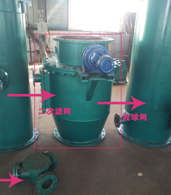 ③解體發現,由于收球網長時間浸在水中,致使大。小收球網網格結垢很嚴重,在網柵和管筒內環上發現大量的污垢片和銹片。它們的存在使柵格流通面積減小,水流速加大,膠球可能卡在收球網的柵板上,加劇了膠球的堵塞,形成惡性循環。另外收球網與簡環配合不子,局部有較大間隙,產生跑球現象。